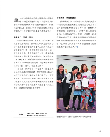 學在外頭蹦蹦跳跳,卻受制身體因素,只能 一次次的演講比賽讓她找到自己的專長和自