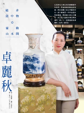 26 位在彰化火車站旁的謝義德外 科診所,是當地遠近馳名的名 ഒ ڢ 醫,而走進樓上的心月藝術中 心,映入眼簾是一件件造型特 ନʕي 殊的瓷器,青花瓷上的山水畫 作,將山遠天高煙水寒的景色 躍然「瓷」上,這是藝術家卓 麗秋(心月)的作品。 ᜳ ਗ 卓麗秋 ʆ˥ග ྡ˪Զāː˜ᖵஔʕː ᙲᅂāڲ҃ ᅠ˖āੵࣜႴ