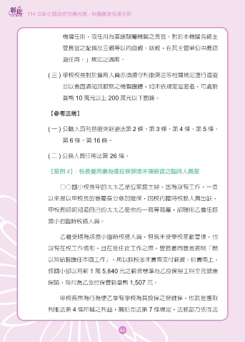 【案例 4】: 校長僱用妻為僅投保保險未領薪資之臨時人員案