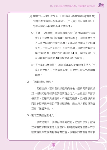B、 「未達」決標條件:由承辦採購單位提醒開標主持人「未