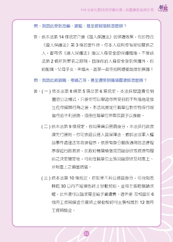 答: 依本法第 14 條規定介接《證人保護法》的保護效果,你於符合