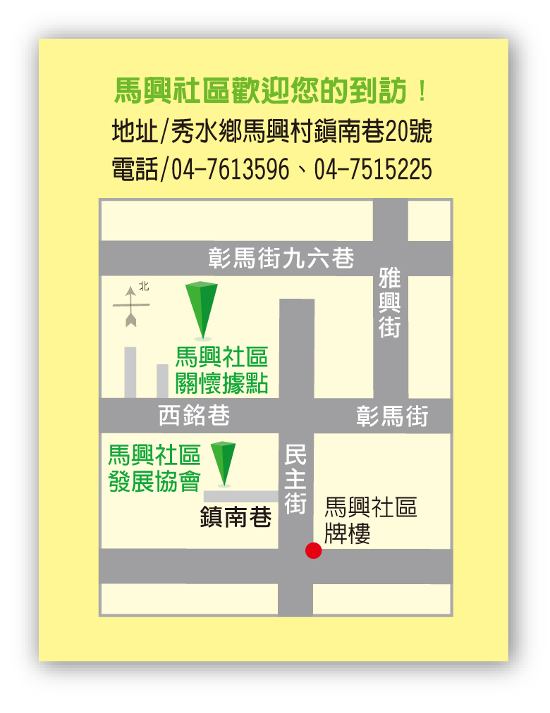 秀水鄉馬興社區的關懷據點,位在全國三大古宅的馬興陳宅旁,平常就吸引許多社區內的長輩們前來休憩,大家一起講古話今,更添增了據點中熱鬧的氣氛。