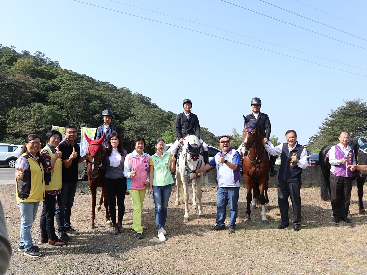 本市農特產多元化,小農精緻化經營,為推動在地健康優鮮的農特產品,展售新鮮、安全、優質的當季特色農產品,因此結合在地馬場、藤山步道等觀光資源,於11月7、8日辦理「走出健康 引以為農」農業產業文化活動,今上午記者會現場更有冠軍馬術師領軍的4匹馬出席,吸引眾人目光,游市長、賴主席、張欣倩議員在馬術教練的指導下,戴上騎士馬術帽,帥氣繞場。