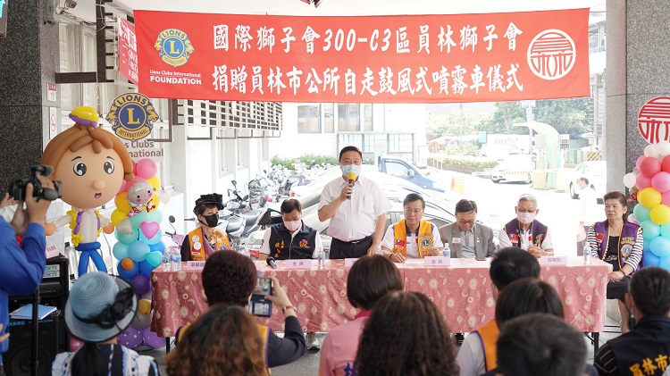 國際獅子會300-C3區員林獅子會秉持回饋鄉里、造福鄉梓,捐贈員林市公所一輛價值35萬元的自走鼓風式噴霧車,今(29)日上午於公所前廣場舉行捐贈儀式記者會,游市長、員林獅子會會長林恩詮、員林市民代表會主席賴東位、副主席張國良及全體代表、彰化縣議員曹嘉豪議員、國際獅子會300-C3區員林獅子會會員…等眾多貴賓(如有遺漏敬請見諒)皆出席贈車儀式,本所秉持「取之於民用之於民」的理念,未來將噴霧車運用在防範疫情及荔枝椿象噴藥防治、病蟲害防治等工作。