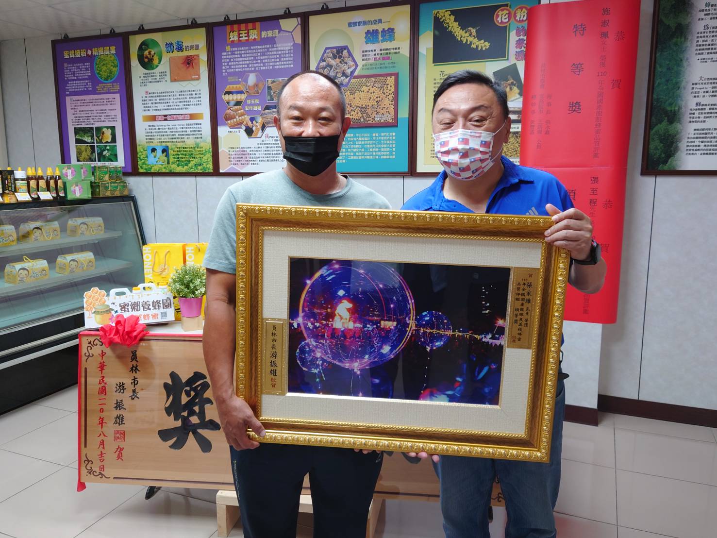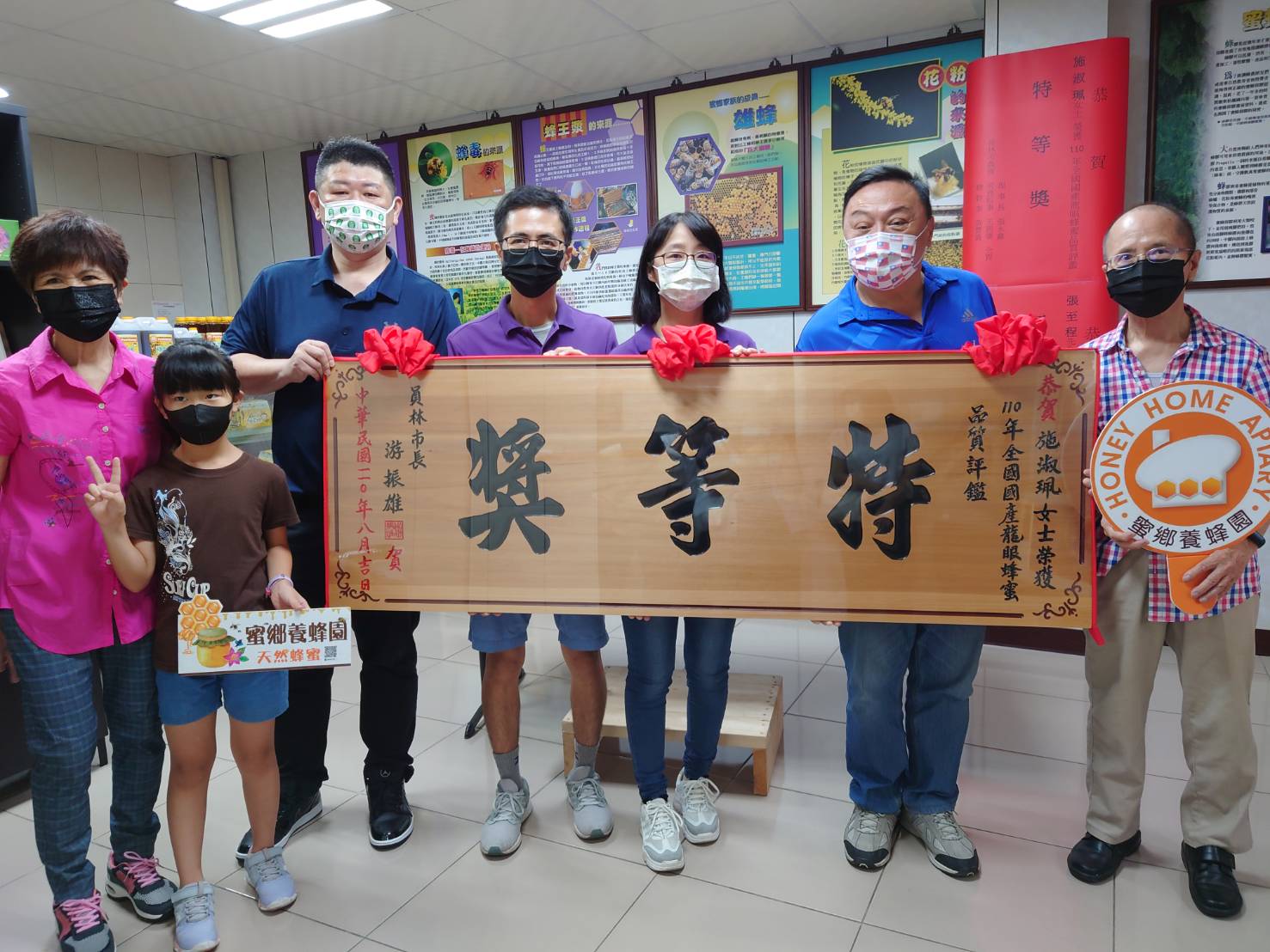 施淑珮小姐及張至程先生榮獲2021年全國國產龍眼蜂蜜品質評鑑特等及頭等獎。張先生表示,阿公是從民國39年開始從事蜜蜂養殖,目前是養蜂第三代,因堅持嚴格衛生品管與生產管理,出產優質蜂蜜,62年開始外銷日本,為服務國內廣大的客戶,於90年增設蜜鄉養蜂園門市。這對賢伉儷秉持著對高品質蜂產品的堅持與執著,以嚴格的衛生管理生產蜂王乳、蜂蜜、花粉、蜂膠、蜂蠟,自產自銷,品質優異可靠。