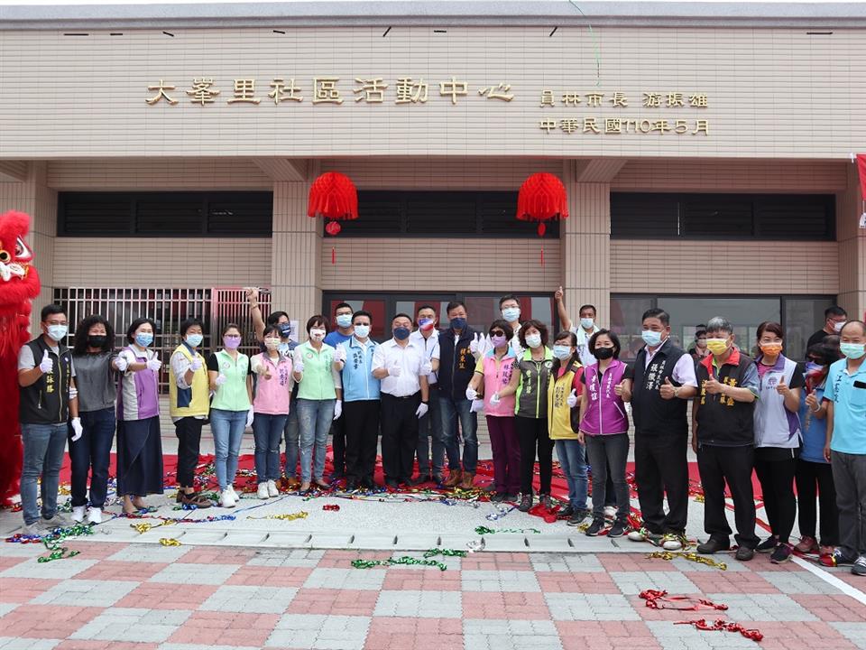 游市長表示,大峰里長久以來都沒有活動中心,每每遇到各項集會苦無場所可用,在歷屆首長與市民代表會大力支持下,市公所自籌1,600萬元,在歷經土地撥用、水土保持工程及建照取得等作業後,興建面積287.7平方公尺為地上一層RC建築物,本案109年4月完成建築工程發包後,廠商配合積極施工於今年5月底完工,另外特別感謝彰化縣長王惠美為健全活動中心硬體設備,縣府更補助100萬元給市公所續辦採購廚具、空調等,現在啟用後,除讓里民享有高規格及舒適的活動中心外,未來將輔導成立社區關懷據點並提供交流互動與辦理各項研習活動,為社區注入新氣象。