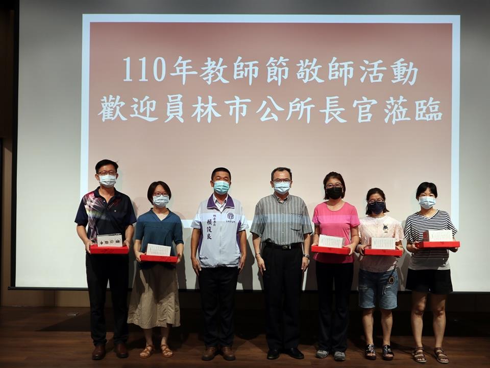 今(9/28)日是一年一度的教師節,也是至聖先師孔子的2,571週年誕辰,員林市長游振雄特別選在今日前往員林國中親自贈送由公所精心選購的禮品予辛苦的老師們,由員林國中校長吳俊良及老師代表全市1,848位高中職、國中小教師接受贈禮,會中並表揚服務滿10年資深優良教師5名、服務滿20年資深優良就師5名、服務滿25年資深優良教師3名及服務滿30年資深優良教師3名共16位,感謝老師們無私的奉獻。