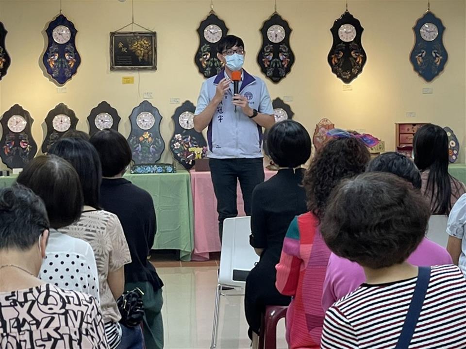 游市長表示,由於高齡化社會來臨,家庭結構與社會環境的轉變,長者退休後不再只有含飴弄孫,而是藉由學習創作、公益服務等實現自我價值、開創第二人生,目前疫情漸趨穩定,希望藉由「長青風華再現」傢飾彩繪展覽,能夠一掃疫情陰霾。