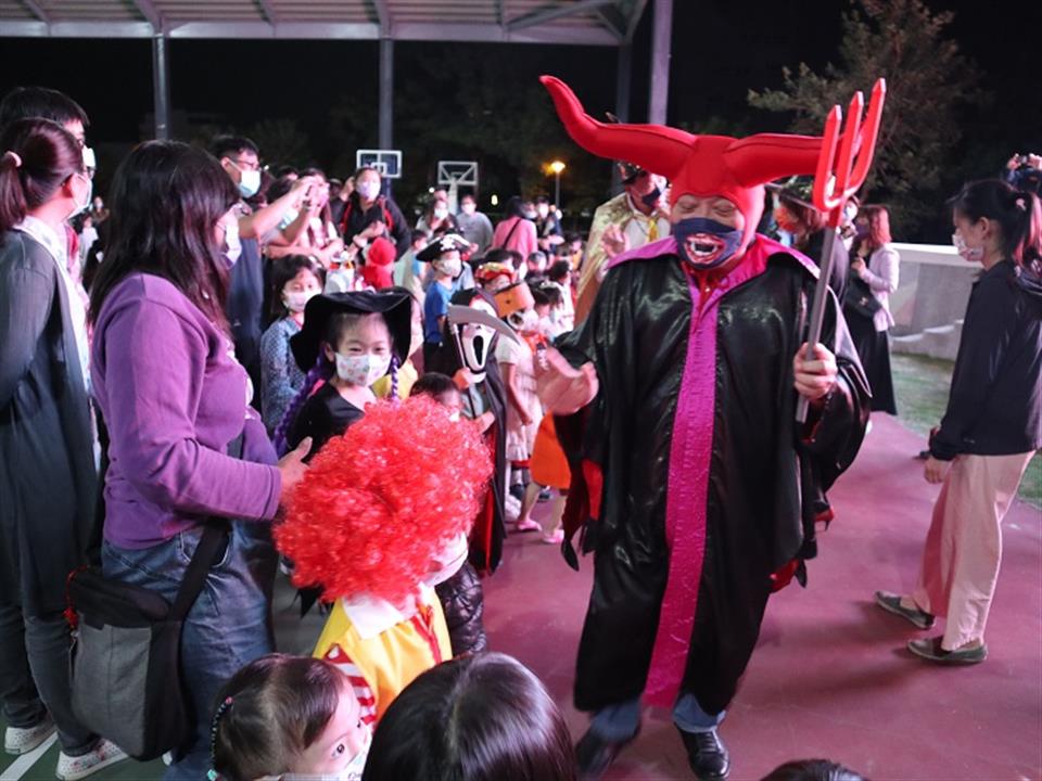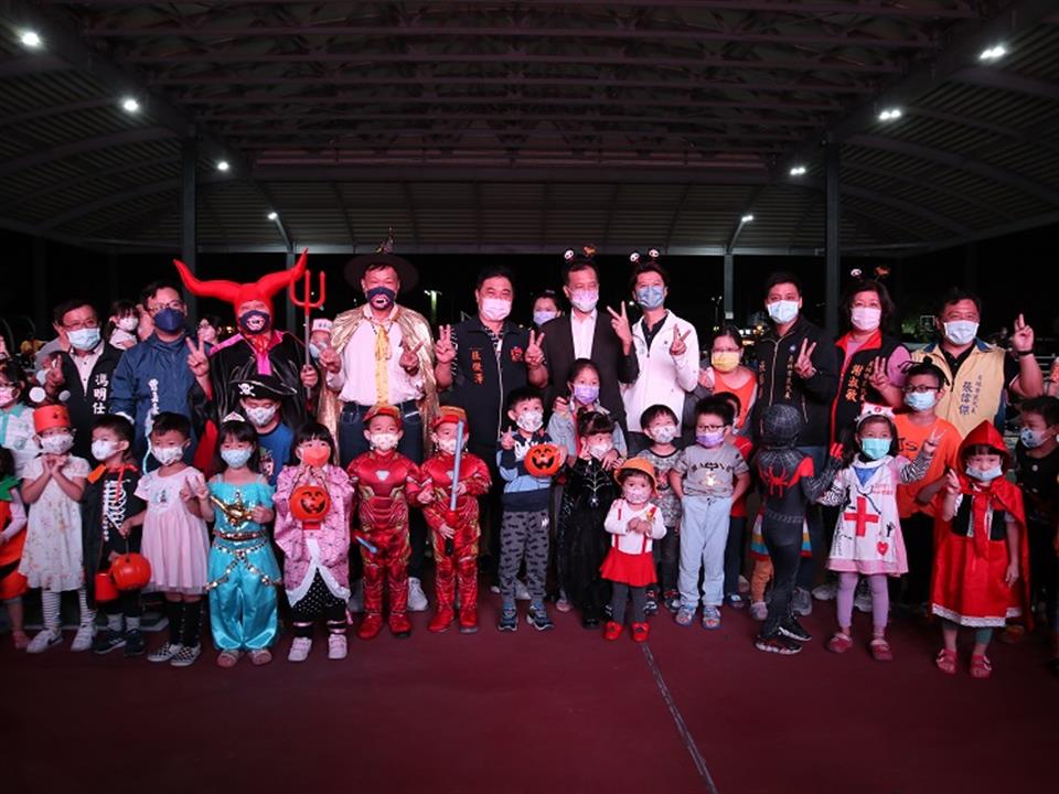 林副縣長致詞時表示,因為疫情逐漸平息,各鄉鎮的活動皆開始展開,在萬聖節前夕市公所特地結合節日辦理月光電影院,包含游市長及賴主席也應景裝扮與大、小朋友一起同樂,並在場地好、設備佳的晴雨球場一起看電影,感覺特別不同。