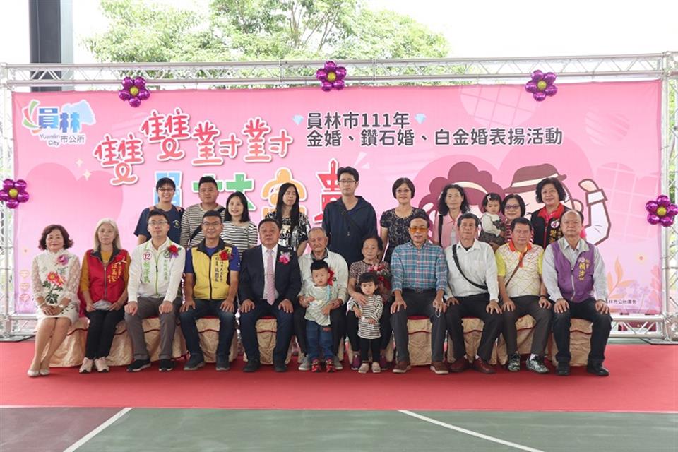執子之手走過半世紀的歲月,員林市公所為讓「老倆口」留下深刻的回憶並接受所有人的祝福,特別選在今(10/29)、明(10/30)二日在晴雨球場舉辦「雙雙對對 員林富貴-員林市111年度金婚、鑽石婚、白金婚表揚活動」,今年共有白金婚(70年)6對、鑽石婚(60年)74對及金婚(50年)243對,共323對接受表揚,有員林市長游振雄、員林市市民代表會主席賴東位、立法委員陳素月、各議員、代表、里長、團長等貴賓出席參與。