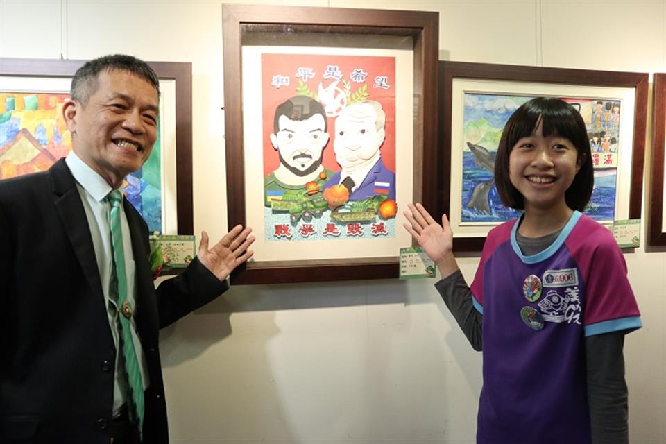 游市長表示,僑信國小美術班的學生在歷經求學階段後,對於藝術有更廣闊而深入的認識與了解,老師們也極為重視學生對於多樣化藝術表現形式的包容與欣賞能力,並指導學生於作品中嘗試多樣的創意表現手法。此次參展的每一件作品都展現出孩子在求學歷程中,經歷無數次的創意激發後創作的豐碩成果,更是孩子藝術夢想的實現。這次展出作品內容多元,每件作品都呈現出孩童豐富的想像力及優異的創造力,帶領觀賞者走進充滿童趣的幻想國度,形式包括繪畫、漫畫、水墨、版畫、平面設計、立體造型與複合媒材等多種樣貌令人讚嘆。
