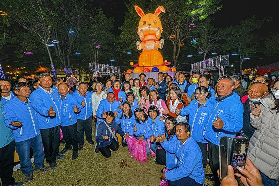 2023員林燈會今(20)日晚間正式點燈,員林市長游振雄、彰化縣副縣長林田富、立法委員陳素月、員林市民代表會主席張國良等貴賓在絢麗光束燈與煙霧搭配周邊光環境下共同啟動今年主燈─歡樂兔星球,並邀請到民歌女神于台煙與日本三線琴藝術家大洞敦史陪伴觀眾迎接兔年新春,共同為今年燈會揭開序幕,今適逢小年夜,不少民眾闔家前來排隊領取市公所每年限定的生肖紀念銀幣與福袋,祈求兔年增添好福氣。
