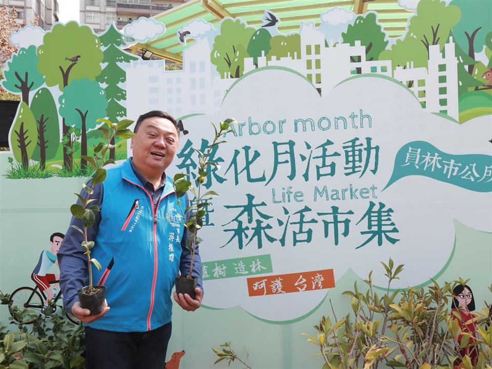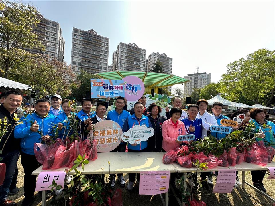 312植樹節即將到來,員林市公所為響應112年「植樹造林、呵護臺灣」植樹月活動,今 (4) 日上午10時至下午4時,在員林公園舉辦綠化月活動暨森活市集,提供茶花、春不老、山芙蓉、桃金孃共計4000株贈樹苗免費索取,員林市長游振雄、市民代表會主席張國良偕同代表一同將樹苗發送給民眾帶回家綠美化,淨化空氣也讓生活品質更好。