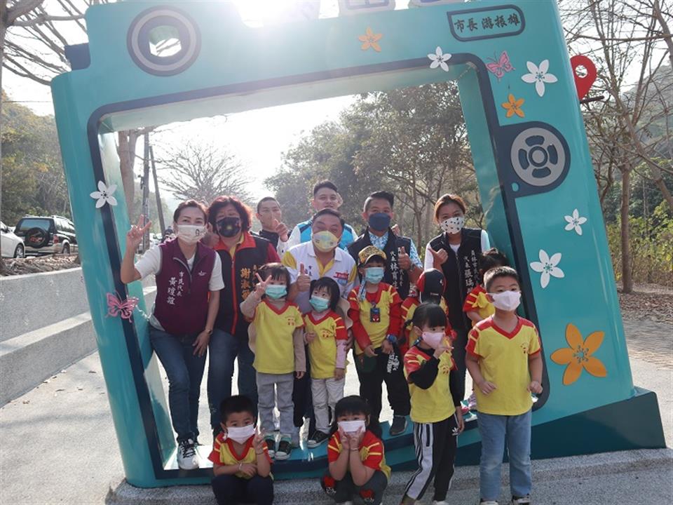 為鼓勵小朋友運動的好習慣與挑戰自我,往藤山步道的路線中,沿途設置四個關卡集章處(藤山市集、員獅亭、三星宮、會場小幼2個闖關活動),由市長、主秘、園長及老師們帶領大家沿著行人木棧道往上走,當進入市集後步道兩旁會有臺灣俚語指示牌,透過親子對話發覺閩南語語言的特色。每走到一個集章處,看到不同的景色,別有一番風情。許多親子家庭一起挑戰自我走到最後一個關卡-三星宮,與老師們分享述說著踏青的心情,大人們給予孩子們的鼓勵與肯定,又能在假日時光與好友一同參與,回憶是美好又甜美的。