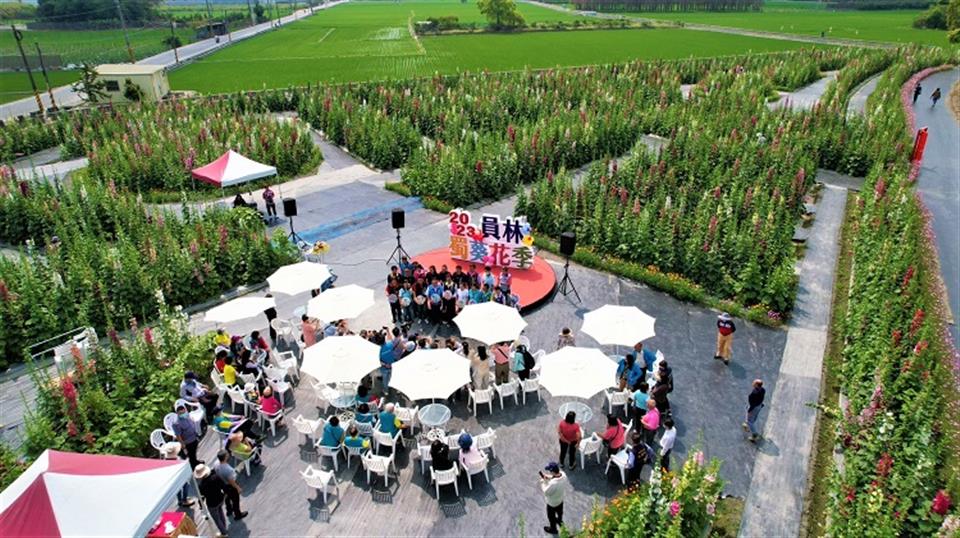 「2023員林蜀葵花季」系列活動將於4月1日開園,花田面積達8,000平方公尺,栽種蜀葵花近萬株,花期預計為期一個月,花田開放時間為每日上午7時至下午6時 (4月17日休園維護不對外開放)。