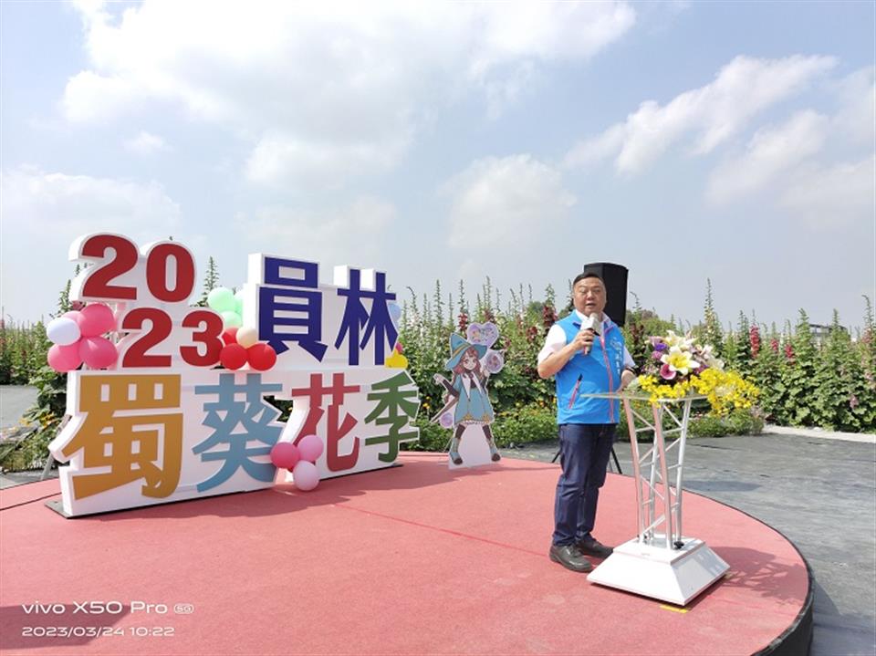 春暖花開的時節,迎來了一年一度員林蜀葵花季,今年活動會場位於員林南區公園旁,員林市公所特於今 (24) 日上午舉行宣傳記者會,員林市長游振雄、彰化縣副縣長林田富、員林市民代表會主席張國良、縣議員曹嘉豪、縣議員凃俊任、縣議員張欣倩、市民代表與里長們一同坐在休憩桌椅上,於花田間享用員林在地茶點,由饒明國小舞獅團熱鬧開場,為花田注入青春活力同時也為「2023員林蜀葵花季」揭開序幕,正式宣布「2023員林蜀葵花季」系列活動將於4月1日隆重登場。