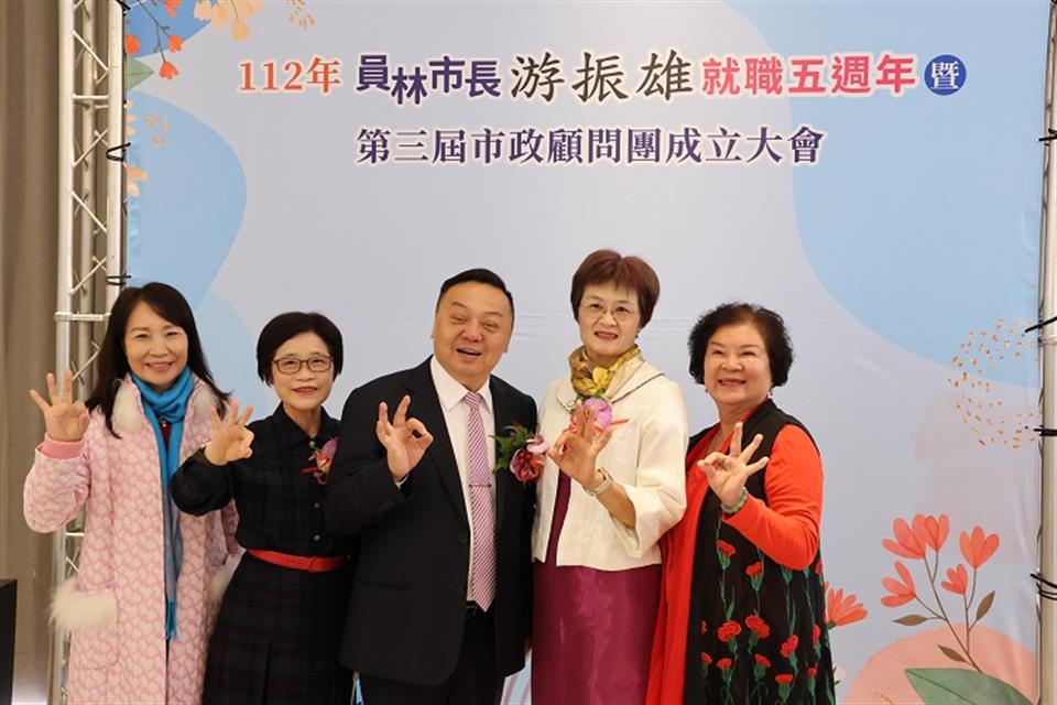 第三屆員林市長游振雄就職滿五年,今 (23) 日於皇潮鼎宴婚宴會館舉辦就職五週年暨第三屆市政顧問團成立大會,率市公所團隊向市民報告施政成果,以「幸福員林 智慧城市」為主軸,報告社福政策、重大建設、觀光發展等成果,並展望2024年,讓市民有感,顧老護幼,樂居生活。