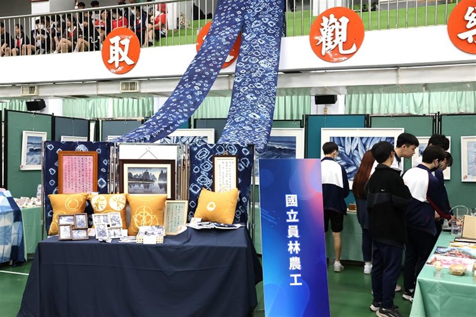 員林農工此次展出的作品風格多元化且創意十足,農場經營科、休閒農業科學生以植物染、藍染技法和染布後製--拼布染布複合技法,將各項染材材料開發設計,複合兩種技法,開創兩種顏色在染布上,猶如作畫在畫布上;園藝科之花卉利用實習課程作品有乾燥花利用,收集校園樹木種子加工做成串飾,利用鋁線做出植栽容器,將生活中的植物材料元素設計出創新的作品。這些作品能為現代人的忙碌生活中,增添一分心靈的最佳療癒效果;機械科學生於創客課程中,培養思考力與創作能力,搜尋時下流行商品,加上自我創意製作始於個人化獨特商品,如立體印章、創意杯墊、客製作馬克杯等;建築科學生使用烏心石材料,運用木工車床基本技巧、砂紙研磨工序,製作文昌筆,將文昌筆擺放在書桌有助讀書、考試順利;生物產業機電科學生透過製作太陽能車的過程,了解如何運用力學原理,結合節能應用來製作太陽能車,加上外觀設計、設計理念、創新技術,讓太陽能技術向下扎根,透過太陽能車實作成為綠能科技人才。