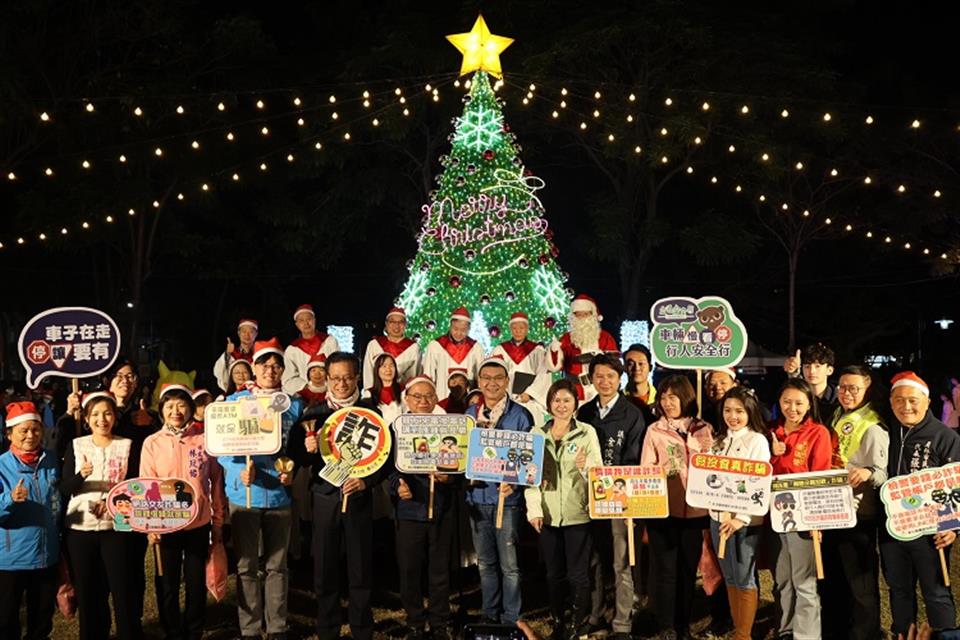 今年市公所為了迎接聖誕節,除了裝設高達8米的聖誕樹及相關光環境布置之外,同時設置互動裝置「星願祝福屋」,讓民眾手寫並且親手掛置聖誕祝福卡祈願,象徵民眾對於未來的期許與祝福,如同星星一般閃耀珍貴。除此之外,活動現場同時免費贈送參與民眾「聖誕帽」與「聖誕造型充氣棒」,並且安排精彩的教會表演、樂團演出及「聖誕好禮摸彩」等節目,期望藉此傳遞本市溫馨歡樂的濃厚節慶氛圍。