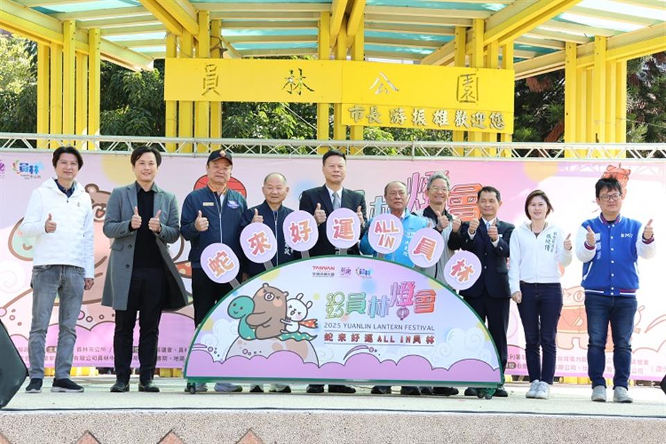 2025員林燈會暨元宵節活動即將於25日晚間在員林公園正式點燈,今年以「蛇來好運 All in 員林」為主題,寓意著員林在新的一年裡,將含有無盡福運與希望光環,市政持續成長茁壯,今 (17) 日活動記者會在員林市代理市長賴致富、員林市民代表會副主席江憲政、員林市里長聯誼會會長洪光旭、參山國家風景區管理處副處長廖錫標、台鐵員林車站站長李瑞德、台懋實業股份有限公司經理楊宗翰、縣議員凃俊任、縣議員曹嘉豪、縣議員張欣倩、彰化縣政府秘書賴沛然等貴賓的共同見證下,宣布了今年燈會主燈─「靈蛇出洞,蛇龍舞春」,同時邀請IP角色「兔兔超人」到場,掀起一片熱潮。