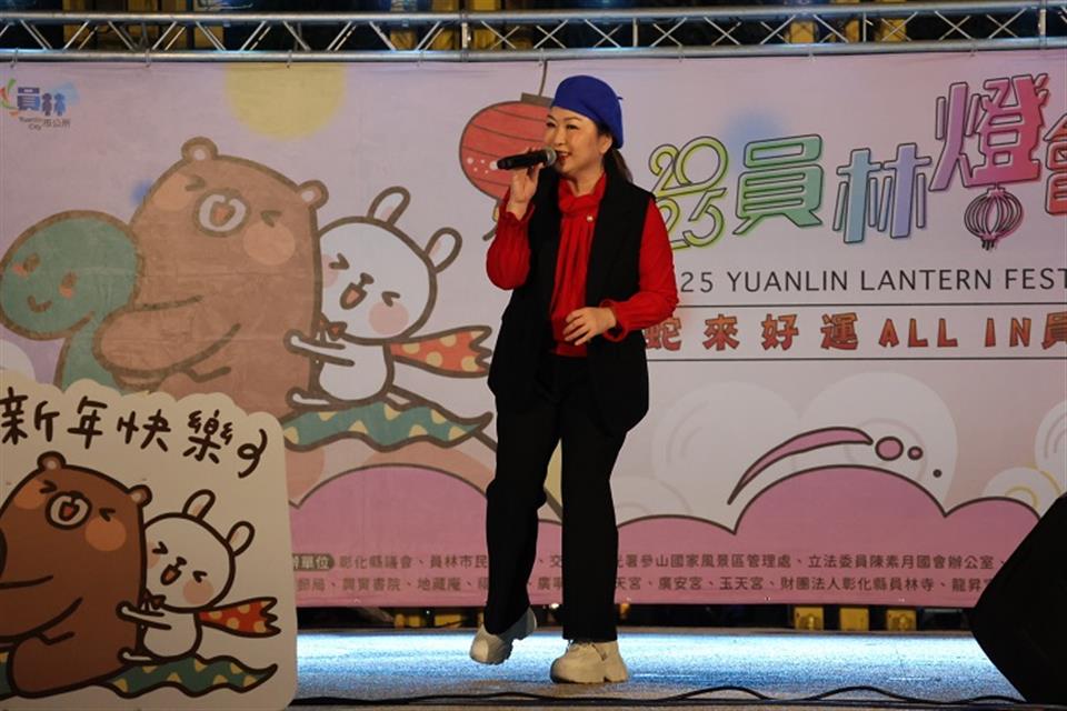 活動在雲火INFERNO火舞團熱力四射的表演中熱鬧開場,炫目的火光與舞蹈交織,瞬間點燃現場氣氛。隨後,備受期待的點燈儀式隆重登場,由彰化縣長王惠美、立法委員陳素月、縣議員凃俊任、縣議員張錦昆、縣議員張欣倩、縣議員劉惠娟、員林市民代表會主席張國良、各市民代表與里長齊同觸控魔球,宣布2025員林燈會正式點燈,隨著音樂與乾冰出現,象徵正義與希望的兔兔超人,以璀璨的燈光點亮夜空,將現場氣氛推向高點。最後壓軸登場的「金曲歌后張秀卿」,帶來《車站》、《贏一口氣》、《愛你一萬年》、《辣妹駕到》一系列耳熟能詳的經典曲目,動人歌聲悅耳深深打動了每一位觀眾,活動在驚喜與感動交織的氛圍下圓滿落幕。