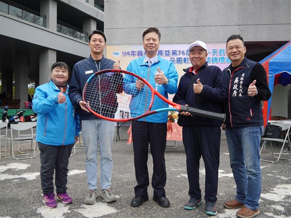 114年員林市長暨第76屆金木、天爵盃全國軟式網球錦標賽於今 (7) 日上午9時30分在員林運動公園隆重熱鬧登場,員林市代理市長賴致富、彰化縣秘書游筑凱、員林市民代表吳政彥及中華民國軟式網球協會副秘書長黃錦洲等貴賓出席,一同為比賽打氣,期許每位選手都能奪得鰲頭,屢創佳績。