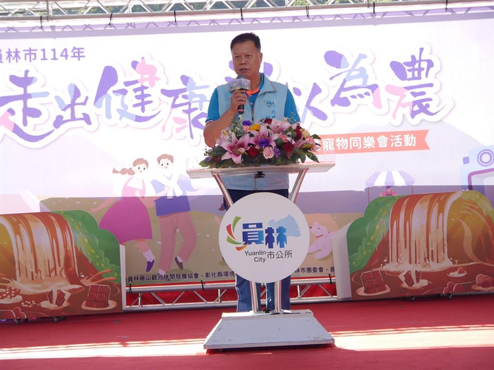 賴致富代理市長表示,今天風和日麗,萬里晴空真的非常適合辦理戶外活動,本所「走出健康 引以為農」自推動以來邁入第6年,已成為員林推廣健康生活與在地農特產的年度品牌活動。今年首度加入寵物友善元素,推出寵物同樂會,拉近家庭與毛小孩的情感,打造成全齡共享的休閒活動。賴代理市長特別強調,農民從事農務是非常辛苦,本所為能體恤農民,對於農業推廣及綠色經濟之行銷更是不遺餘力,持續致力改善農民生產效能如小型農機、套袋及荔枝椿象防治賽洛寧藥劑補助,以提高生產量能,而更值得驕傲的是我們的火龍果和蜂蜜產品,近年來在全國性的評鑑中屢獲殊榮,成為員林農業的最佳代言產品。這份榮耀,是所有員林農民共同努力的成果,也是我們推動綠色經濟、實現農業價值的最佳證明,而在寵物趣味活動部分,感謝游前市長振雄興建員林第一個寵物公園,讓寵物有個放風戲耍的遊樂空間,在此特別感謝彰化縣政府王惠美縣長、農業處郭至善處長對本所農政經費之挹注及員林市民代表會張國良主席與各代表對本所預算之支持,更感謝所有參與籌備的工作人員、表演團體、在地農民以及熱情參與的市民朋友支持本所各項活動,讓公所繼續推展各項農業政策以造福及嘉惠農民朋友們。