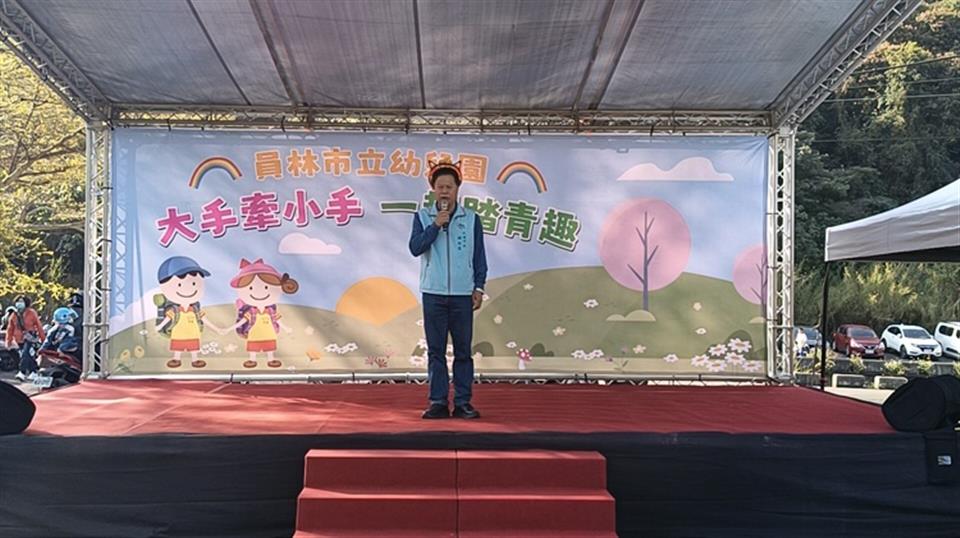 員林市立幼兒園於今(3/14)日上午8時15分,在員林運動公園第一停車場舉辦「大手牽小手一起踏青趣」親子活動,活動中由員林市代理市長賴致富、代表會主席張國良及各位代表;彰化縣議會凃俊任議員、劉惠娟議員、曹嘉豪議員、張欣倩議員偕同與會各位貴賓熱情參與,並帶領現場大小朋友進行暖身活動,為踏青行程揭開序幕。現場氣氛熱絡,洋溢著歡樂與活力。