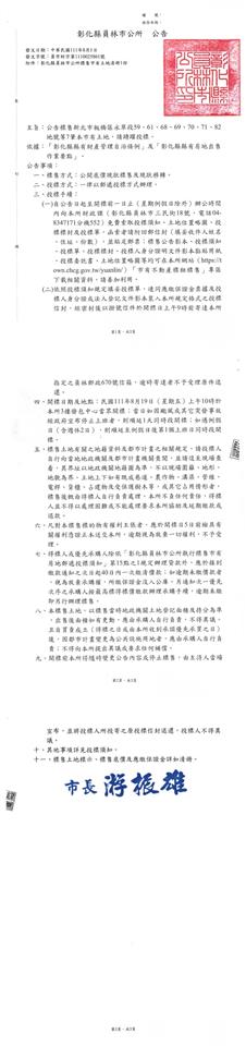 113年度第1次市有不動產標租結果公告(標號1:員林段53-24)