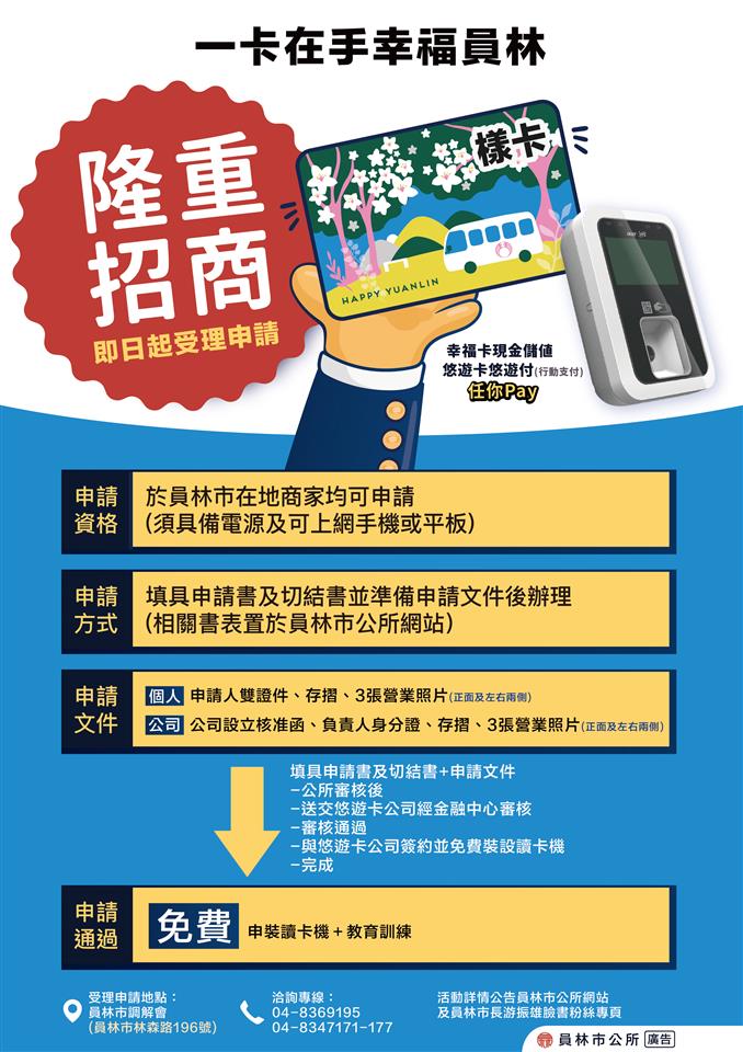 📢📢員林幸福卡即日起開始受理申請