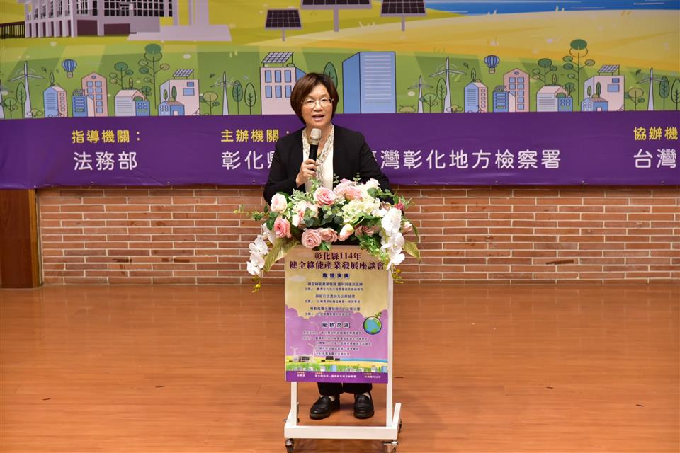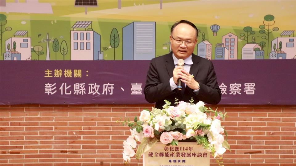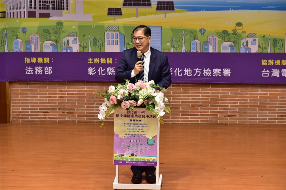 彰化縣政府與彰化地方檢察署於114年4月24日假彰化縣立圖書館演講廳共同舉辦「彰化縣114年健全綠能產業發展座談會」,邀集產官學界約180人與會,透過公開對話與經驗交流,促進綠能產業健全發展,更深化廉能治理觀念,為地方創造雙贏共榮的契機。縣長王惠美、法務部長鄭銘謙、廉政署長馮成、彰化地檢署檢察長謝名冠與台灣透明組織理事長葉一璋等均出席本次座談會,貴賓橫跨行政、司法、廉政、檢察、綠能產業及公民監督等多元領域,充分展現政府與民間攜手合作、凝聚多元觀點、推動產業永續發展的決心與行動力。